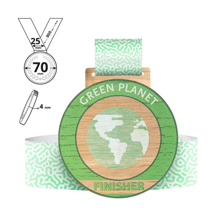 Medalla redonda impresa a todo color en el anverso, que incluye un cordón de 25x900 mm totalmente personalizable. Gracias al tratamiento especial -corte por láser e impresión UV a todo color en toda la superficie-, podemos realizar cualquier personalización requerida por el cliente.