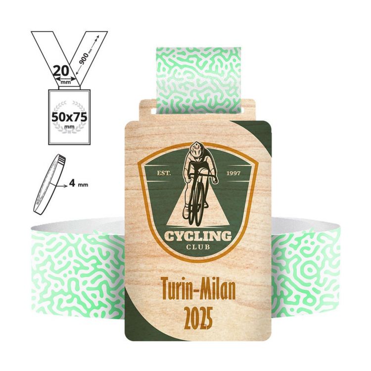 Medalla rectangular impresa a todo color en el anverso, que incluye un cordón de 20x900 mm totalmente personalizable. Gracias al tratamiento especial -corte por láser e impresión UV a todo color en toda la superficie-, podemos realizar cualquier personalización solicitada por el cliente.
