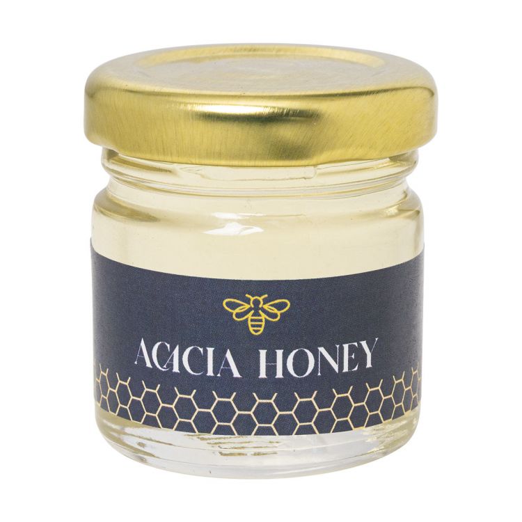 Miel de acacia en tarro de cristal transparente con tapa metálica, 50 gramos