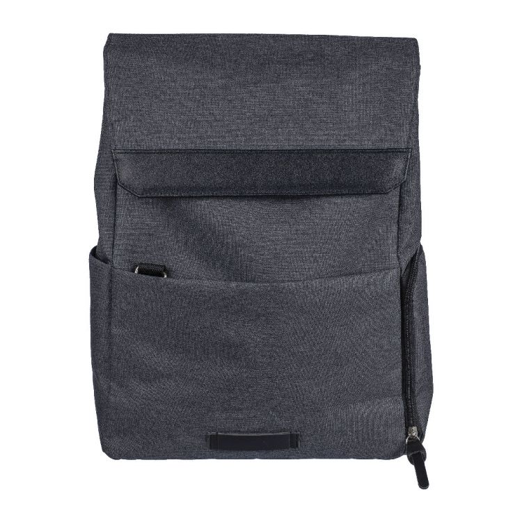 Mochila para portátil de lona de poliéster 600D (15'') con detalle de PVC y forro de 210D. Cuenta con un pequeño bolsillo frontal con cremallera con un mosquetón para llaves, un compartimento lateral con cremallera, un bolsillo lateral normal y un gran compartimento cerrado con imán con un bolsillo para portátil. Botones a presión en el lateral para cerrar la mochila cuando no está completamente llena. Correas ajustables ventiladas. Incluye una etiqueta de rPET en la parte delantera.
