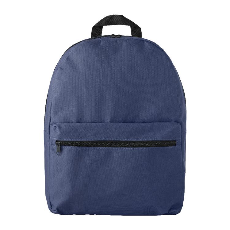 Mochila de poliéster (600 D) con cremallera en el compartimento principal y bolsillo delantero. Tirantes acolchados ajustables.