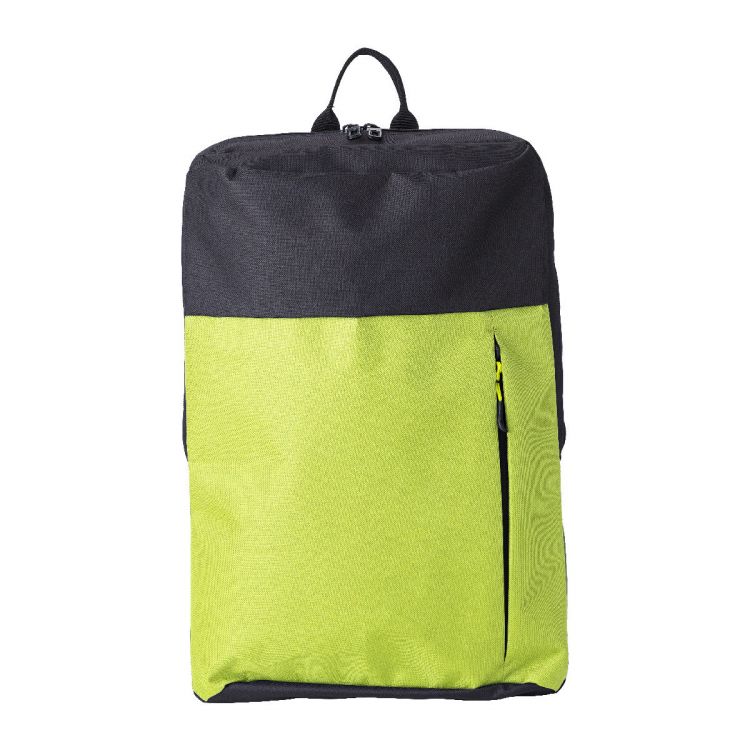 Mochila de poliéster (600 D) con un compartimento principal y un bolsillo frontal con cremallera. Tirantes ajustables y acolchados.