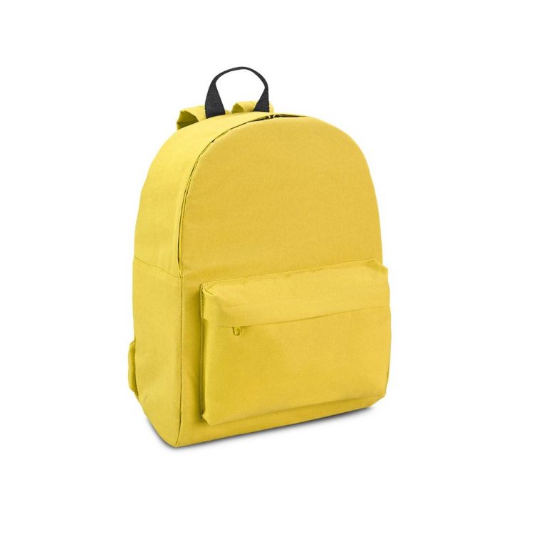 Mochila versátil y cómoda que garantiza la organización diaria con espacio suficiente para llevar tus objetos esenciales. Disponible en una amplia gama de colores.Material exterior: poliéster 600DMaterial interior: poliéster 190TCapacidad (L): 18Compartimentos: 1 compartimento principalBolsillos exteriores: 1 bolsillo frontal con cremalleraPanel trasero: acolchadoCaracterísticas adicionales: correas acolchadas en tejido 310 x 410 x 120 mm. Producto en color amarillo