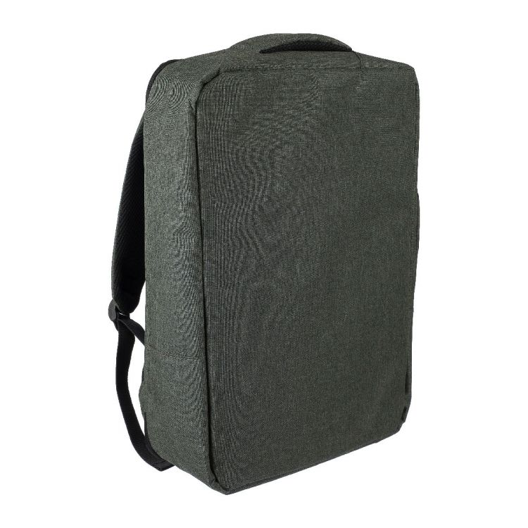 Mochila para portátil de poliéster rPET 300D con un forro de rPET 210D. Cuenta con un gran compartimento con cremallera con múltiples bolsillos insertables, un bolsillo para portátil (15’’) con cierre de velcro. y una capacidad de 12 litros. Tiene un respaldo reforzado y ventilado, tirantes ajustables, un asa lateral y una correa para acoplar al trolley. Incluye una etiqueta indicando que es material reciclado. Capacidad de carga: 10 kg.