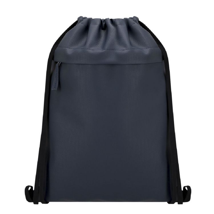 Mochila de cuerdas fabricada en suave PU combinado con resistente poliéster 600D. Incluye funcional bolsillo frontal con cierre de cremallera y tirador a juego en PU.