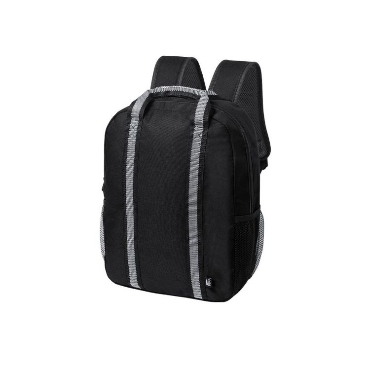 Mochila de línea nature y en resistente 600D RPET, elaborado a partir de plástico reciclado para así fomentar la reutilización de residuos plásticos y contribuir a la sostenibilidad del planeta. Con tiras reflectantes y disponible en variada gama de colores. Compartimento principal con cierre de cremallera y bolsillo lateral de redecilla de fácil acceso. Espalda y cintas acolchadas, con distintivo RPET en etiqueta exterior.