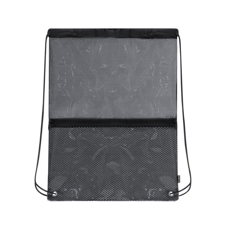 Mochila de cuerdas en RPET, con compartimento principal de diseño transparente. Cuenta con cuerdas de autocierre y esquinas reforzadas con resistentes argollas metálicas. Iincluye práctico bolsillo frontal de rejilla con cierre de cremallera. Incluye distintivo RPET en etiqueta lateral.El material RPET se elabora a partir de plástico reciclado, para así fomentar la reutilización de residuos plásticos y ayudar a la sostenibilidad del planeta. (color negro)