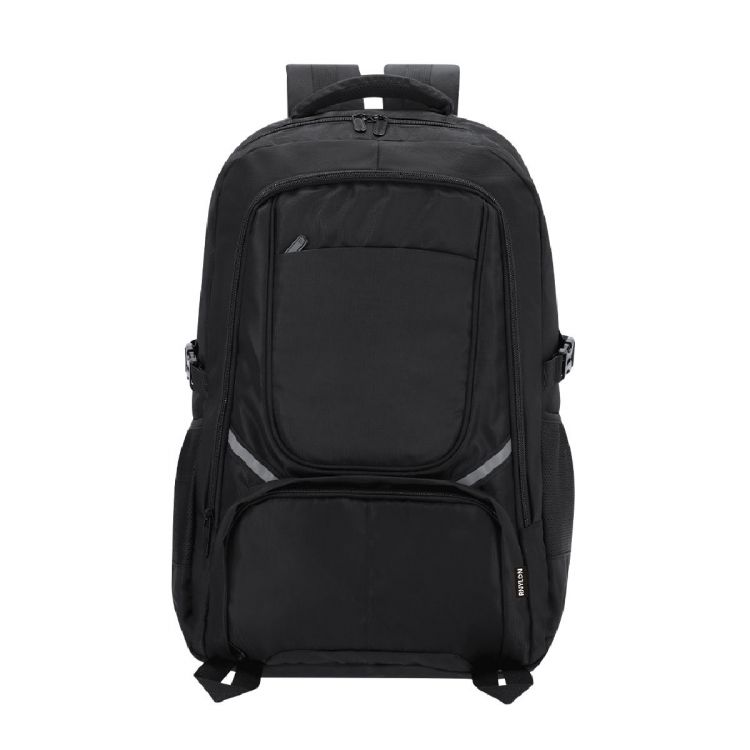 Mochila fabricada en Nylon Reciclado 420D. Con bolsillo principal de cierre de cremallera con doble tirador. Bolsillos de malla laterales y cintas de hebilla ajustables Bolsillo interior para portátil de hasta 15 pulgadas. Incluye dos bolsillos frontales con cierre de cremallera y cintas reflectantes. Espalda y cintas acolchadas ajustables, con hebilla de cierre en el pecho para mayor sujeción. (color negro)