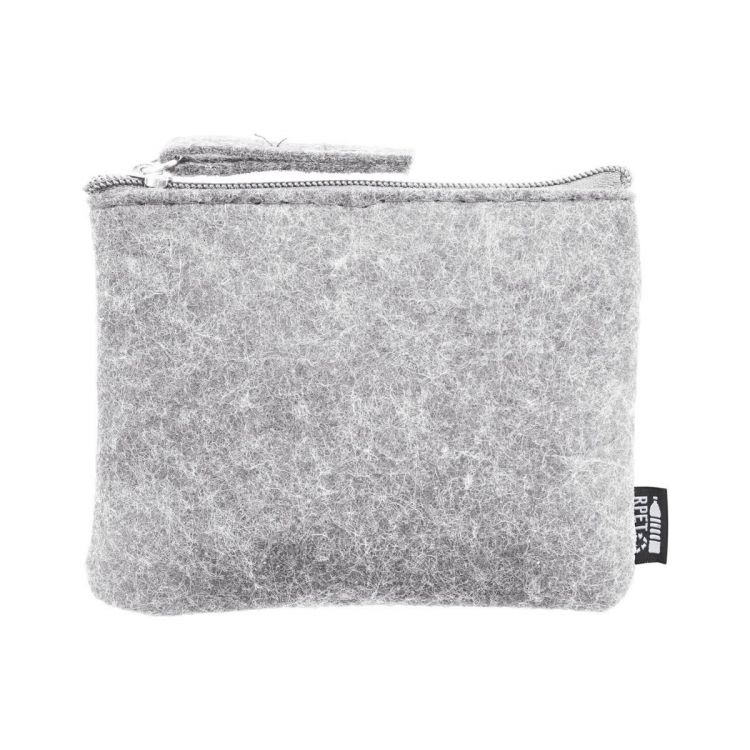 Monedero de fieltro RPET con cremallera. Con etiqueta RPET distintiva.
