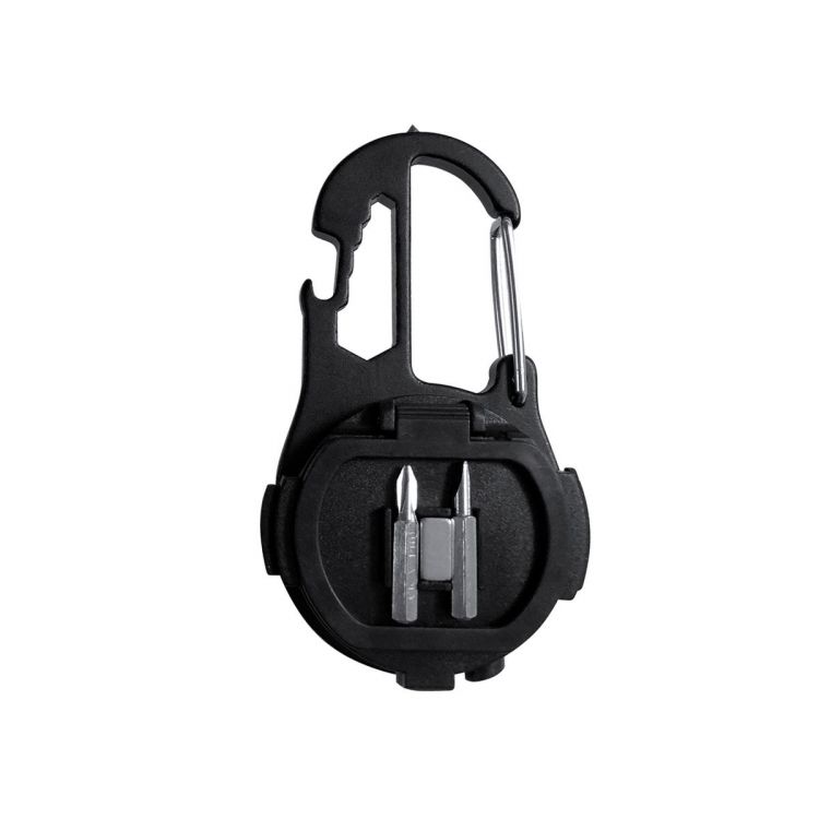Práctica multiherramienta fabricada en resistente aluminio de acabado en negro y 12 funciones. Con linterna de 20 luces COB y 3 posiciones de iluminación: luz fija con dos grados de intensidad y luz intermitente; y alimentada por una batería de 500 mAh. Incluye llaves para tuercas hexagonales en varios tamaños, abridor, y martillo rompe cristales. Con función destornillador (incluidas puntas planas y philips) y un potente imán. Práctico mosquetón de enganche y soporte en la parte trasera. Con cable de carga incluido y presentado en caja de diseño kraft. (color negro)