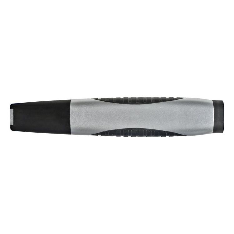 Soporte de plástico con 4 destornilladores, nivel y linternita con luz LED. Pilas incluidas.