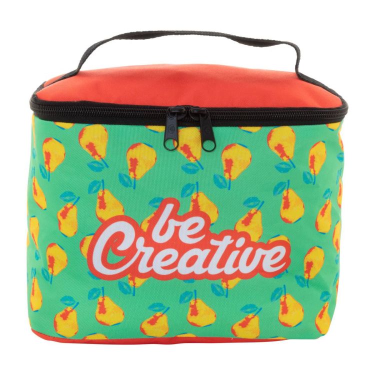 Neceser RPET personalizado con cremallera, fabricado en poliéster RPET 600D y asa de transporte. Con gráficos impresos por sublimación en toda la superficie. Cantidad mínima: 50 unidades.