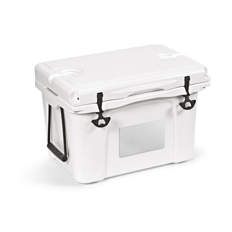 Mejore sus experiencias al aire libre con nuestra nevera ecológica. Fabricada con plástico reciclado, doble pared, capacidad de 35L y placa frontal personalizable (20 x 10 cm). El aislamiento garantiza que sus bebidas se mantengan frescas hasta 4 días., color blanco