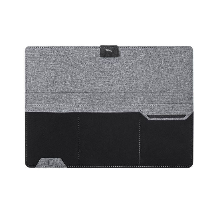 Elegante y práctico organizador con soporte imantado, ideal para facilitar el trabajo o uso de portátil en cualquier lugar o espacio. Fabricado en resistente poliéster gris jaspeado con detalles en polipiel de color negro. Incluye soporte para bolígrafo y smartphone, con 4 bolsillos elásticos para el almacenamiento de diferentes gadgets. (color gris)