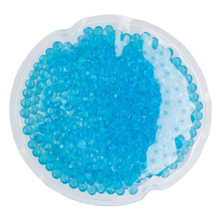 Parche de PVC redondo, con funciones de frío-calor, con perlas de agua. Puede ser calentado (baño maría) o enfriado (congelador) después de su uso.