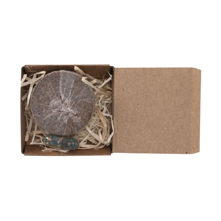 Pack plantable con cápsula de semillas y pastilla de sustrato, presentado en estuche de cartón reciclado con instrucciones de plantado. Flores silvestres. (color natural)