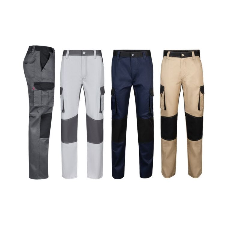 Pantalón multibolsillos de sarga bicolor (240 g/m²), en algodón (35%) y poliéster (65%). Corte Slim Fit, cintura elástica y refuerzo de tejido en rodillas y espalda. Contiene seis bolsillos (2 bolsillos franceses, 2 bolsillos laterales con fuelle y 2 bolsillos traseros con fuelle). Tamaño: 34, 36, 38, 40, 42, 44, 46, 48, 50, 52, 54, 56, 58, 60