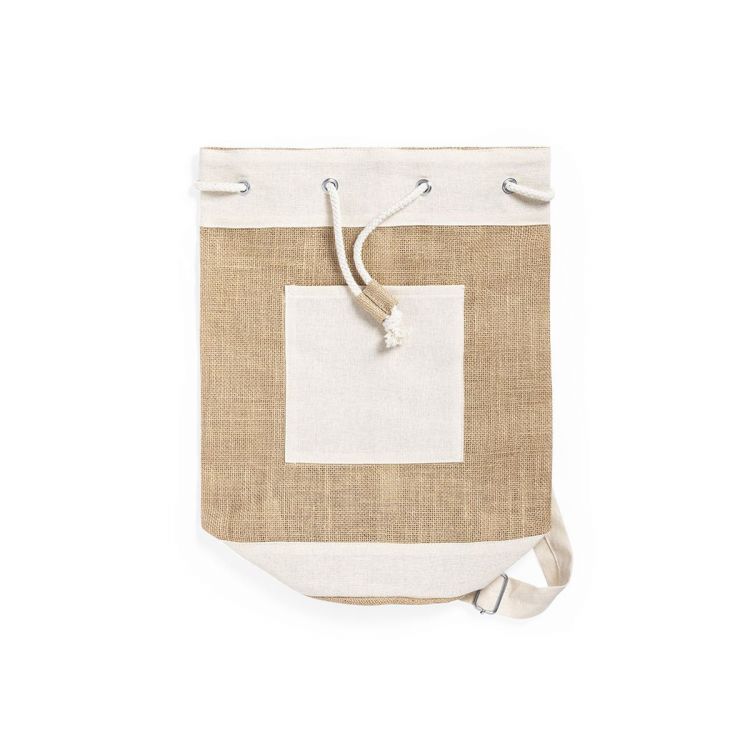 Petate multiusos de línea nature y diseño bicolor. Fabricado en yute, con detalles en algodón. Con cinta ajustable y bolsillo interior. Compartimento principal con argollas metálicas reforzadas y bolsillo frontal para fácil marcaje. (color natural)