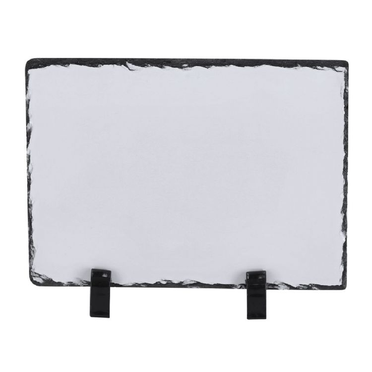 Placa de pizarra, ideal para sublimación. Incluye soportes de exposición en resistente ABS. Ideal para regalos personalizados, reconocimientos,premios y decoración. (color blanco)