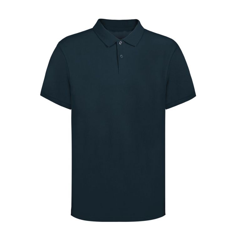 Polo de adulto de manga corta confeccionado en piqué 100% algodón peinado Ring Spun de 220g/m2. Tacto suave y corte moderno, con aperturas laterales en los bajos y disponible en variada gama de colores. Tapeta de dos botones, con doble costura en dobladillo y mangas, para una mayor durabilidad y resistencia al uso intensivo. Disponible en tallas S, M, L, XL, XXL y 3XL. (color azul marino, tamaño XL)