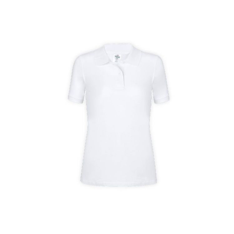 Polo de piqué para mujer de Keya WPS180. En material 100% algodón de 180g/m2. Con dos botones de cierre a juego y disponible en color blanco. Tallas S, M, L, XL, XXL.