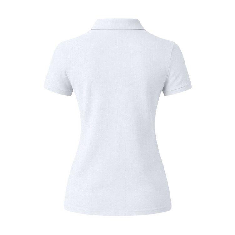 Polo de manga corta, fit femenino, de 180 g/m2. Confeccionado en 100% algodón piqué. Tapeta con dos botones a tono con acabado mate. Con cubrecosturas reforzado en el interior del cuello. Ribete acanalado en mangas y cuello. Costuras laterales con aperturas en la parte del bajo.