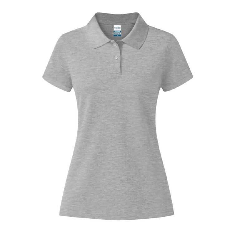 Polo de mujer de manga corta. Confeccionado en piqué 100% algodón peinado Ring Spun de 220g/m2. Tacto suave y corte moderno, con aperturas laterales en los bajos y disponible en variada gama de colores. Tapeta de dos botones, con doble costura en dobladillo y mangas, para una mayor durabilidad y resistencia al uso intensivo. Disponible en tallas S, M, L, XL y XXL.