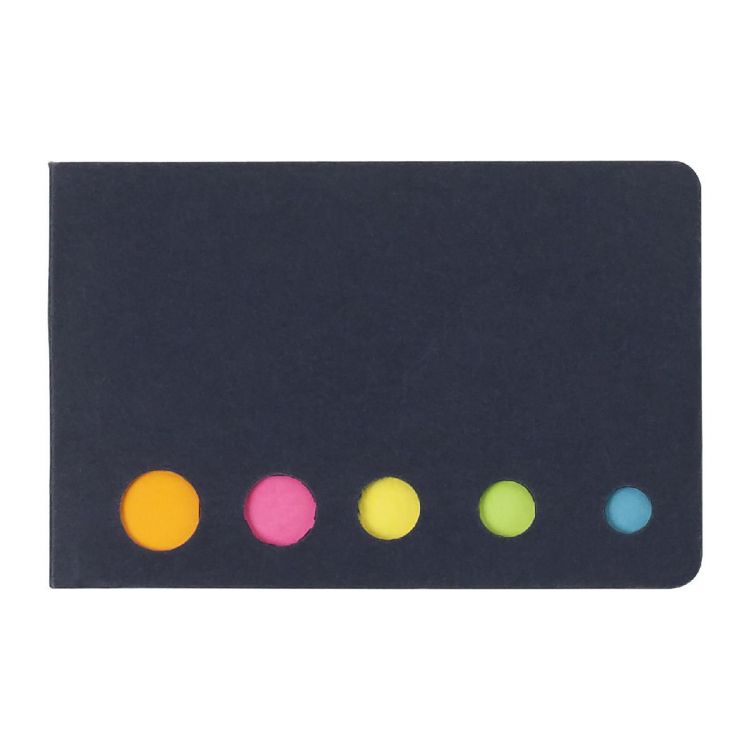 Porta memos de cartón (300g/m²). Contiene 100 memos (75g/m²) con banda adhesiva, 20 de cada color.