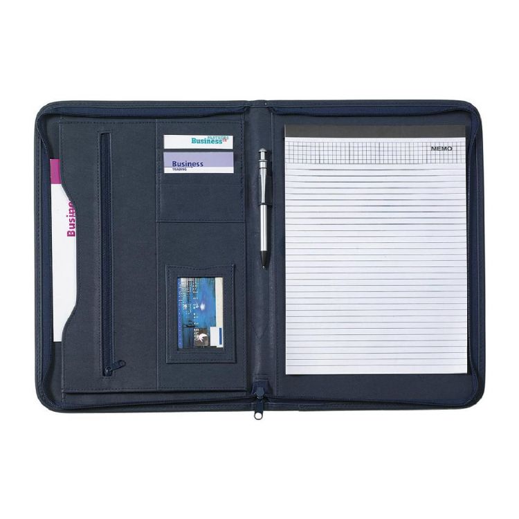 CarPETa de congresos (aprox. A4) de PU, con cierre cremallera, varios compartimentos en su interior y espacio para tarjetas. No incluye bolígrafo. Bloc opcional por separado (Ref. 8400).