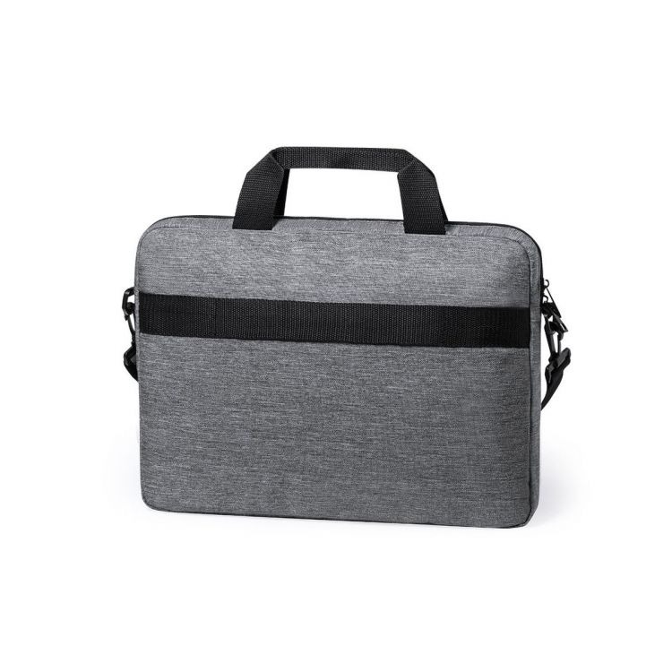 Elegante portadocumentos de línea nature en resistente 600D RPET efecto melange, elaborado a partir de plástico reciclado para así fomentar la reutilización de residuos plásticos y contribuir a la sostenibilidad del planeta. Detalles en negro, incluye compartimentos interiores acolchados para ordenador de hasta 15 pulgadas y tablet de hasta 10 pulgadas. Accesorio en parte posterior para anclaje al trolley, bolsillo exterior con cierre de cremallera, cómodas asas reforzadas, cinta bandolera ajustable con cierre de mosquetón y almohadilla para hombro a juego. Distintivo RPET en etiqueta exterior. (color gris)