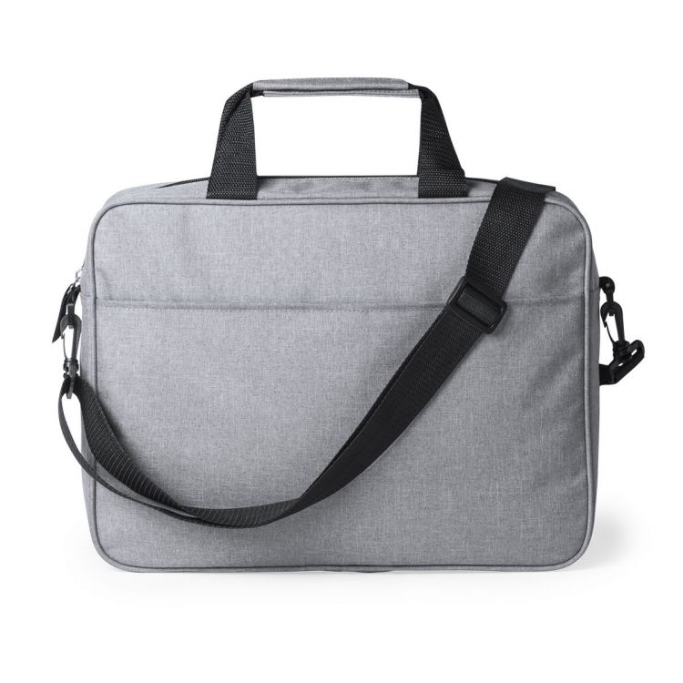 Portadocumentos de cierre de cremallera en elegante poliéster 600D de color gris. Con bolsillo exterior con cierre de velcro, cómodas asas reforzadas, cinta bandolera ajustable con cierre de mosquetón y accesorio en parte trasera para acople en barra de trolley. (color natural)