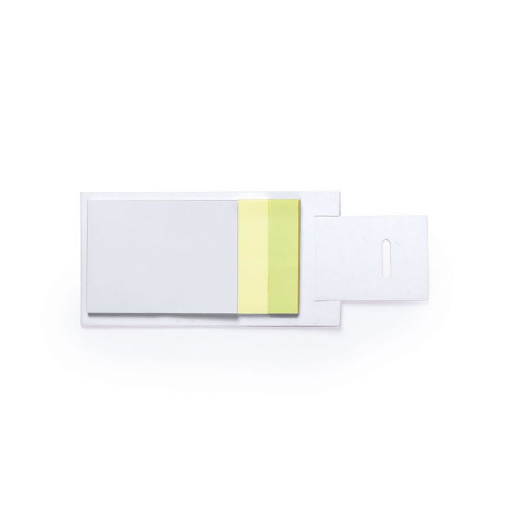 Original portanotas de cartón con diseño stand en variada gama de vivos colores. Incluye 30 notas adhesivas grandes y 50 mininas adhesivas. Presentación desplegado para fácil impresión.