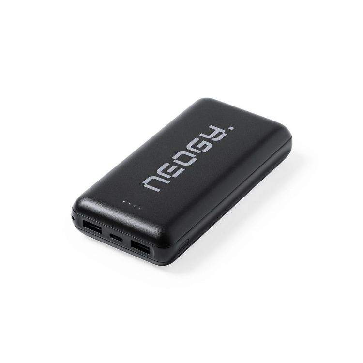 Batería auxiliar externa de gran capacidad de carga -20.000 mAh-. Conexión Tipo-C de entrada/salida de corriente y salida USB doble. Con capacidad de carga simultánea de hasta 3 dispositivos. Ledes indicadores de estado de carga, diseño curvado y amplia superficie de marcaje. Presentada en atractiva caja de diseño. Las capacidades mostradas en todas nuestras baterías auxiliares externas son reales, incorporando todas ellas baterías de grado A y no recicladas, con una vida útil de al menos 500 ciclos de carga y según normativa CE. Además, están fabricadas conforme a los estándares RoHS y en cumplimiento con los siguientes requisitos de seguridad: Sistema de protección contra sobrecarga del power bank. Sistema de protección contra descarga completa que proporciona una mayor durabilidad del power bank. Sistema de bloqueo para evitar cortocircuitos. Sistema de transferencia de carga constante, acorde con la capacidad del dispositivo de destino.