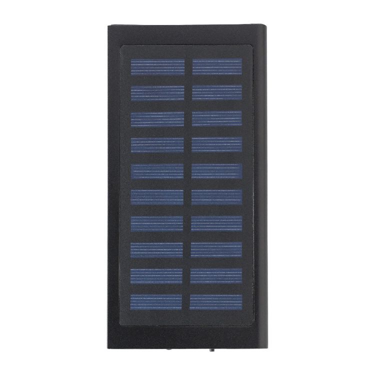 Power Bank solar de ABS y aluminio, 8.000 mAh. Entrada DC5V / 1A. Salida: DC5V / 1A y DC5V / 2.1A. Con puerto USB y cable de carga de USB -micro USB.