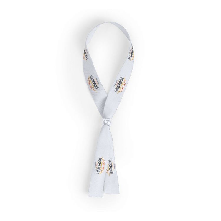 Pulsera ajustable en suave poliéster y amplia gama de colores. Con accesorio de ajuste en color plateado brillante.