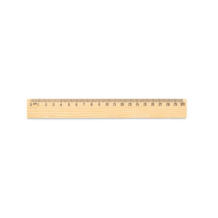 Regla de madera de pino con escala de 20 cm impresa en color negro. Como el producto está fabricado con materiales naturales, el color como el resultado de la impresión pueden variar entre unos y otros productos. 209 x 25 mm. Producto en color natural