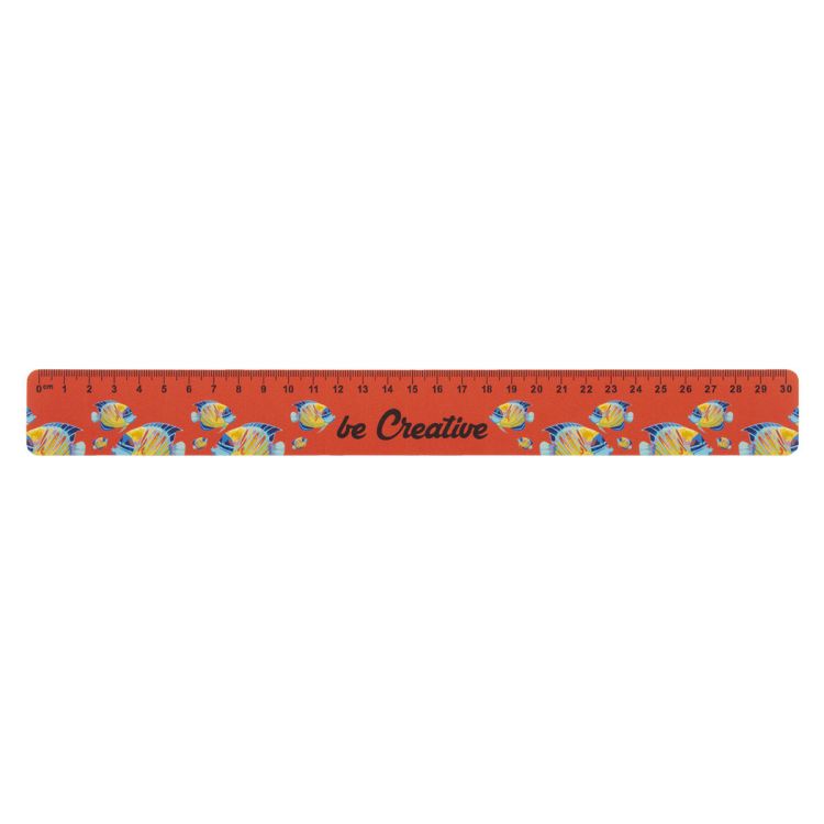 Regla de plástico flexible de 30 cm con gráficos personalizados. El precio incluye impresión LED UV por una cara. Cantidad mínima: 100 unidades