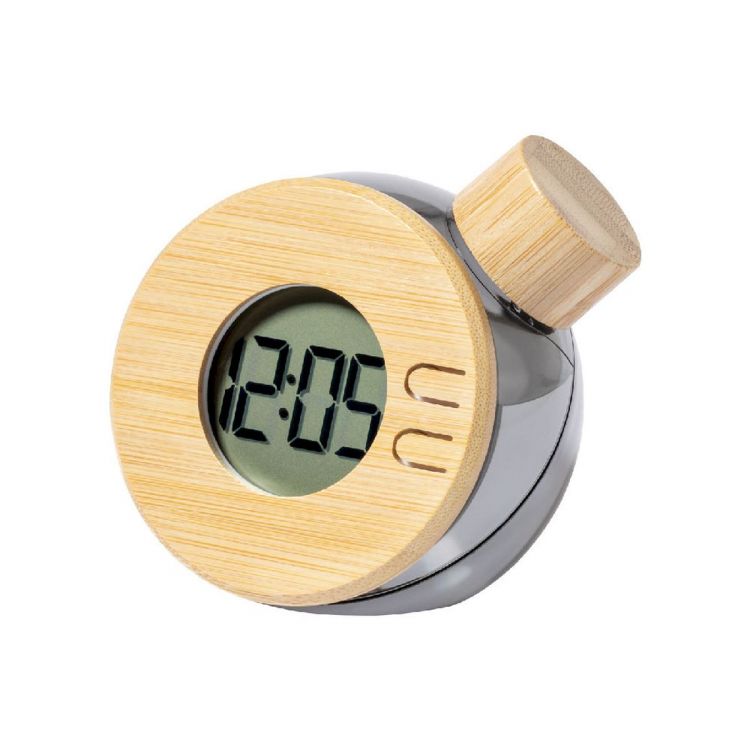 Reloj digital de sobremesa accionado por agua con carcasa de plástico y detalles de bambú