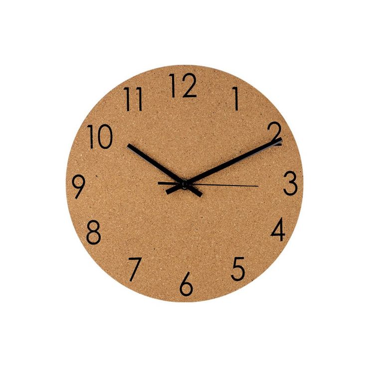 Reloj de pared fabricado en corcho natural, con números y dial metálico de color negro. Alimentación a pilas (1xAA no incluida). (color natural)