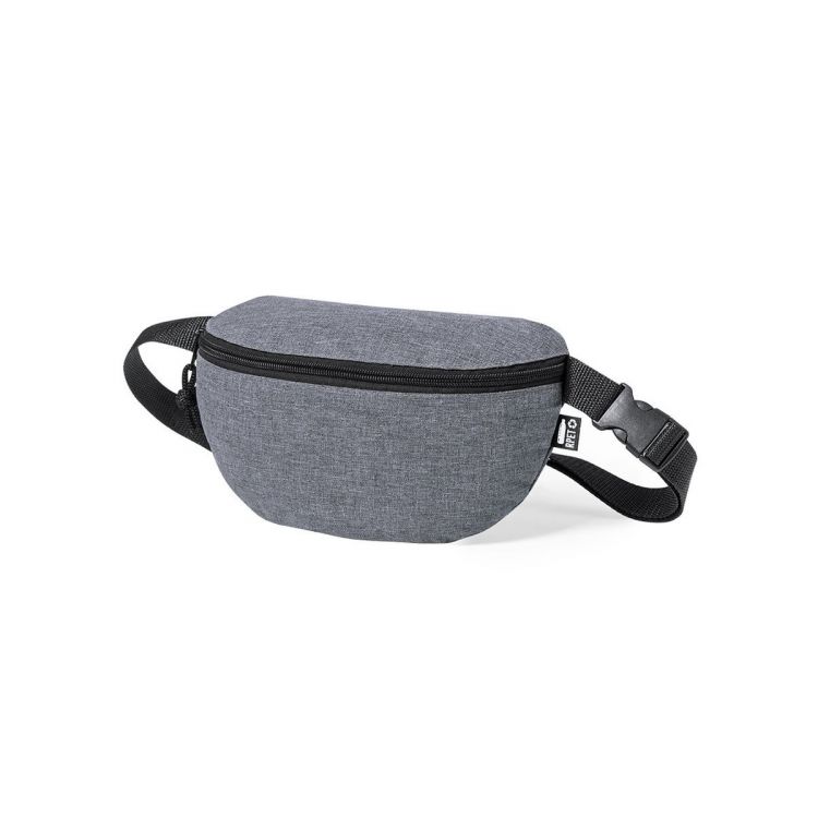Riñonera de línea nature fabricada en resistente 600D RPET efecto melange. Elaborado a partir de plástico reciclado para así fomentar la reutilización de residuos plásticos y contribuir a la sostenibilidad del planeta. Compartimento principal con cierre de cremallera y cinta ajustable con cierre de hebilla. Diseñada para actividades deportivas y de ocio, con distintivo RPET en etiqueta exterior.