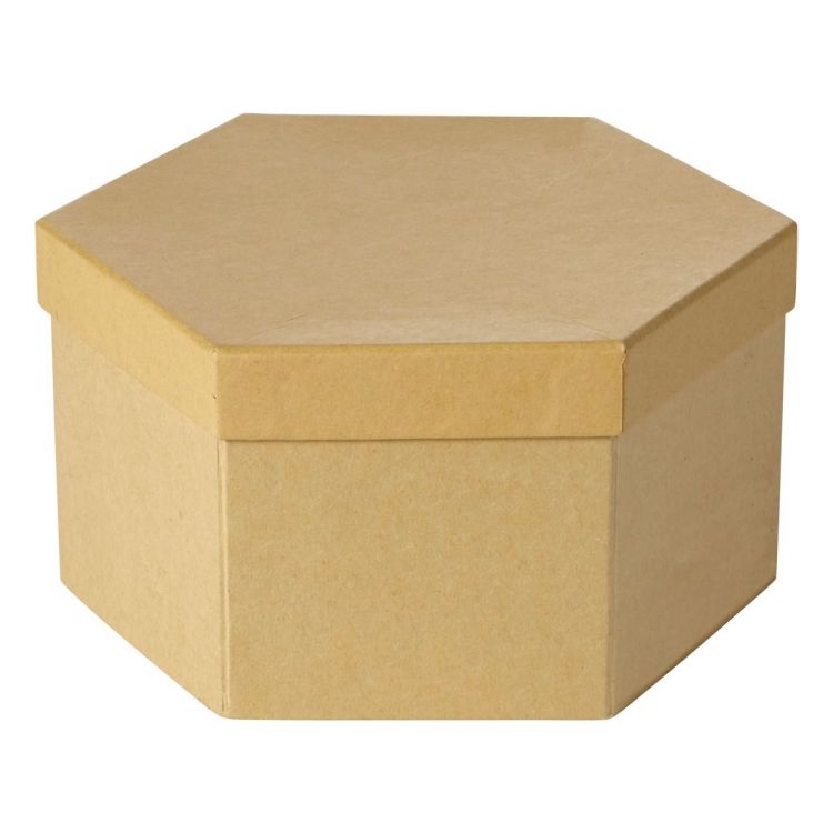 Set de pinturas de 56 piezas en un estuche hexagonal de cartón. Incluye ceras, lápices de colores, rotuladores, acuarelas, 1 goma de borrar, sacapuntas y clip.