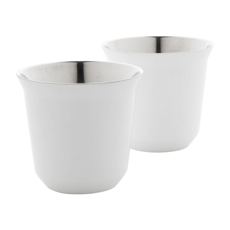 Set de 2 tazas de café espresso con tazas térmicas de doble pared con forma de cápsula de café, de acero inoxidable reciclado, 80 ml. En caja de papel kraft.