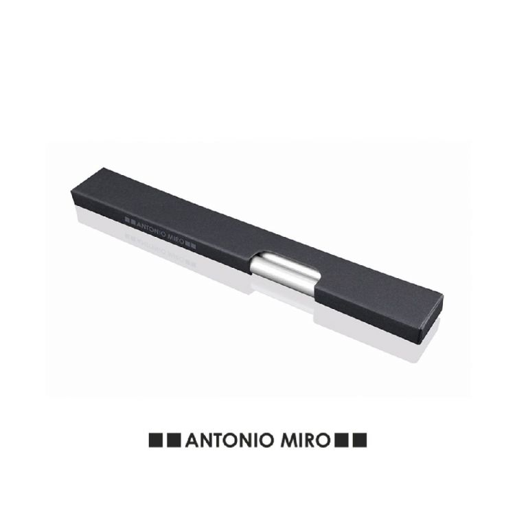 Set de 3 lápices de madera de Antonio Miró en elegante acabado plateado, con logotipo de la marca en parte superior. Presentados en elegante estuche de cartón negro con ventana y logotipo de la marca. (color natural)