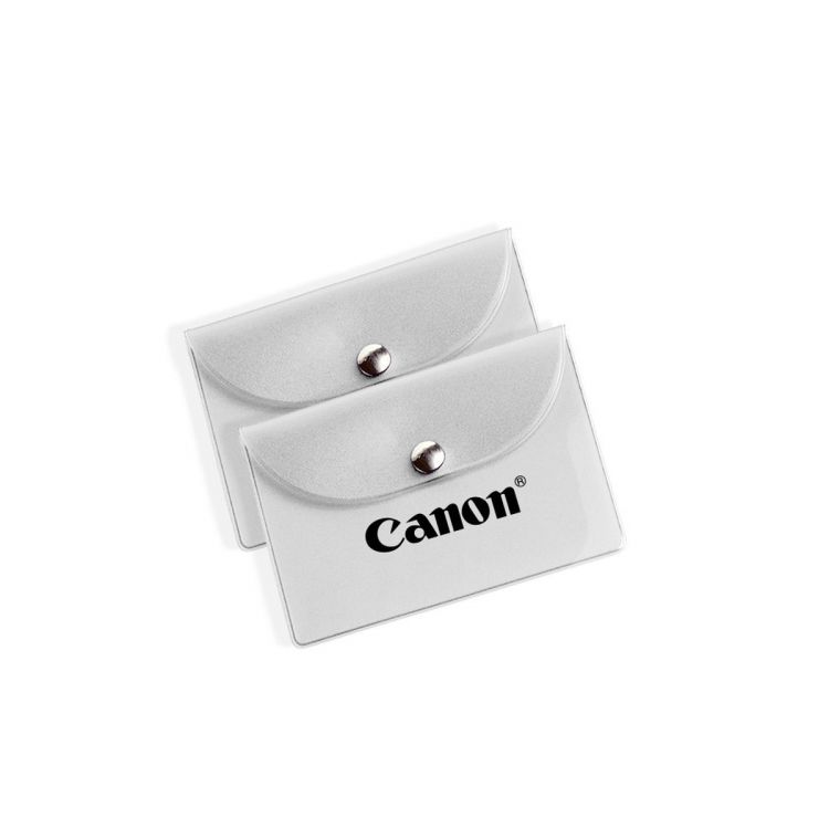 Sobre pequeño con solapa de PVC transparente, con un botón de cierre niquelado.