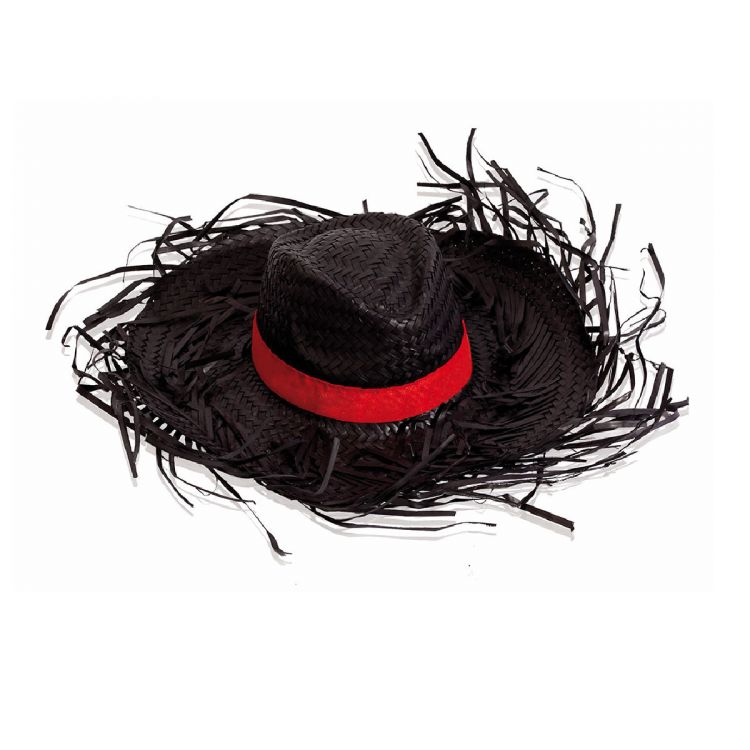 Sombrero de paja en color blanco con confortable cinta interior y terminación en flecos filagarchados. (color negro)