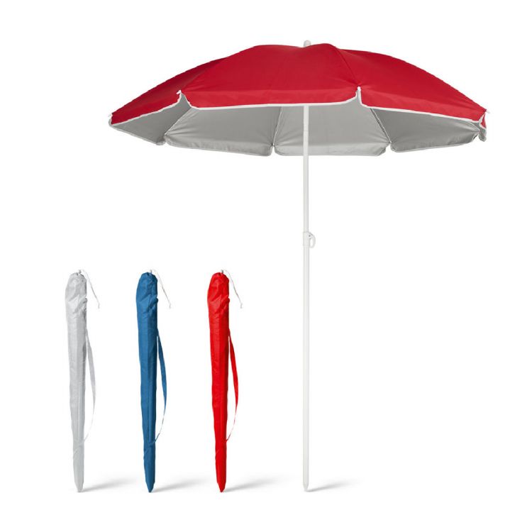 Sombrilla reclinable fabricada en poliéster 210T, con forro interior plateado. Se suministra en una bolsa con asa. ø1400 mm | 1600 mm | Funda: 1010 x 110 mm