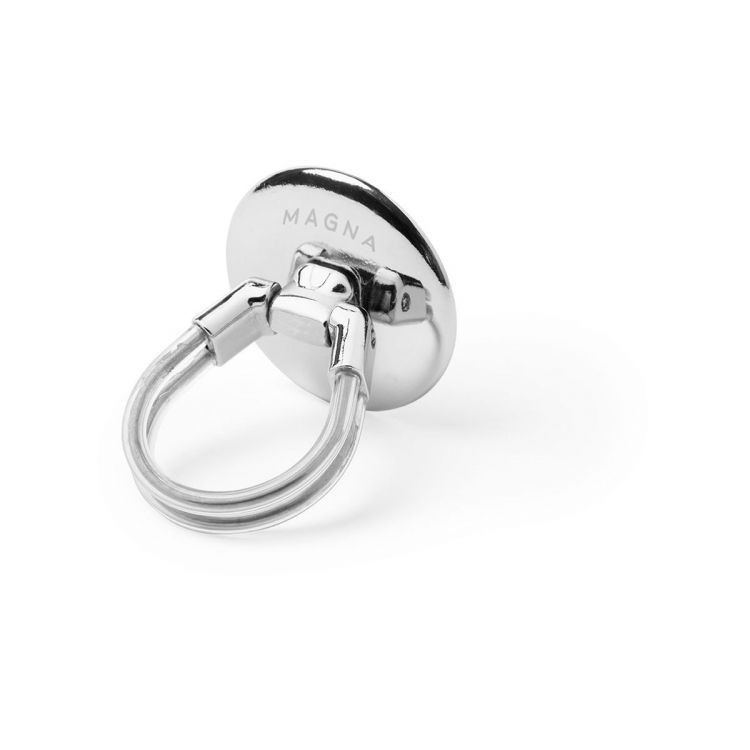 Soporte selfie en metal cromado para smartphone. De elegante diseño y con adhesivo 3M, de fijación extra fuerte y libre de residuos al despegarlo del dispositivo. Con doble anilla soporte posterior, para dedo y rejilla del salpicadero del vehículo. Presentado bolsita de diseño individual. (color plata)