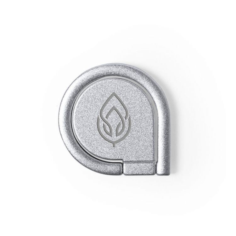 Soporte metálico para smartphone en acabado mate. De elegante diseño y con adhesivo 3M, de fijación extra fuerte y libre de residuos al despegarlo del dispositivo. Con anilla soporte posterior para dedo y presentado en bolsita individual de diseño. (color plata)