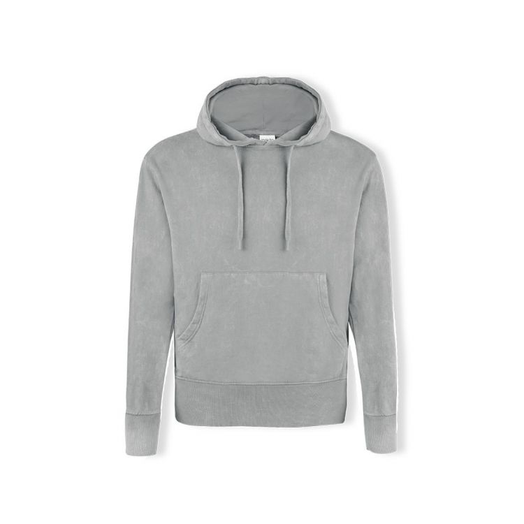 Sudadera unisex con capucha y tejido con efecto lavado jeans lo que hace que cada pieza sea única e irrepetible. Bolsillo canguro y elásticos de ancho extra para un ajuste perfecto. Detalle en contraste en elástico de puños y bajo. Confeccionado en 100% algodón peinado con un gramaje de 280g/m2. Tacto suave y corte moderno. Cordones ajustables planos y ojetes de confección, evitando así el uso de metal. Dobles costuras para una mayor durabilidad y resistencia al uso intensivo. Etiqueta fácilmente removible. Disponible en tallas XS, S, M, L, XL y XXL.