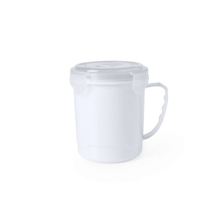 Tarro de 710ml de capacidad en resistente PP especialmente diseñado para líquidos. En variada gama en vivos colores, tapadera translúcida con 4 cierres, anilla de seguridad interior y dosificador integrado. Asa ergonómica a juego